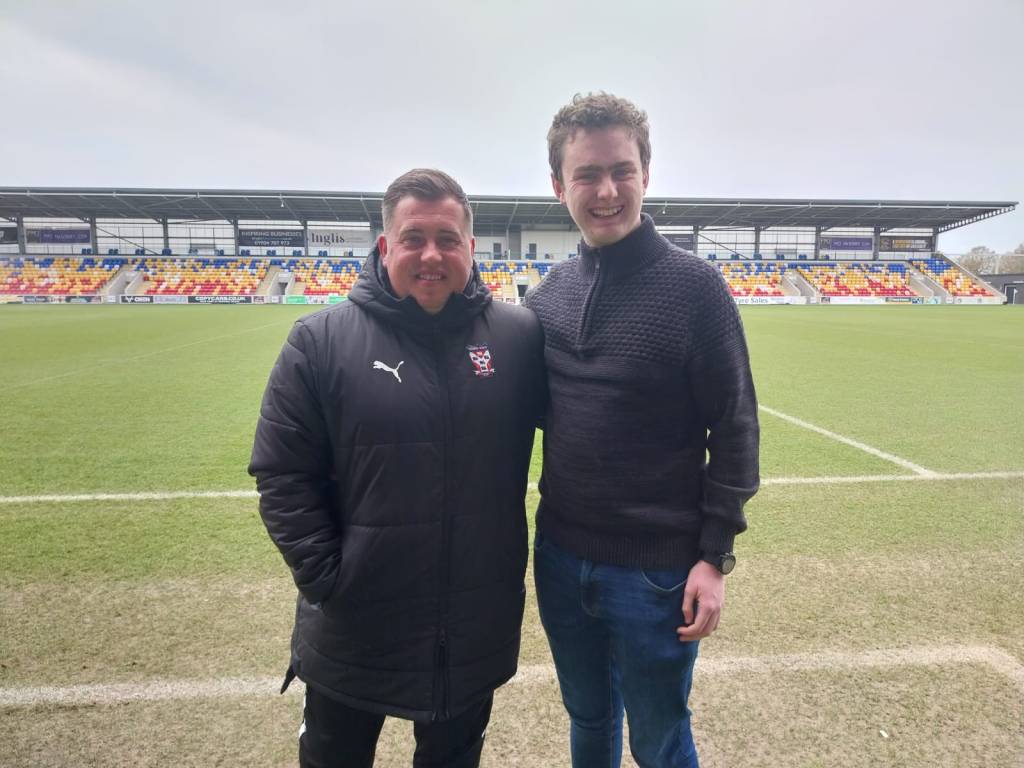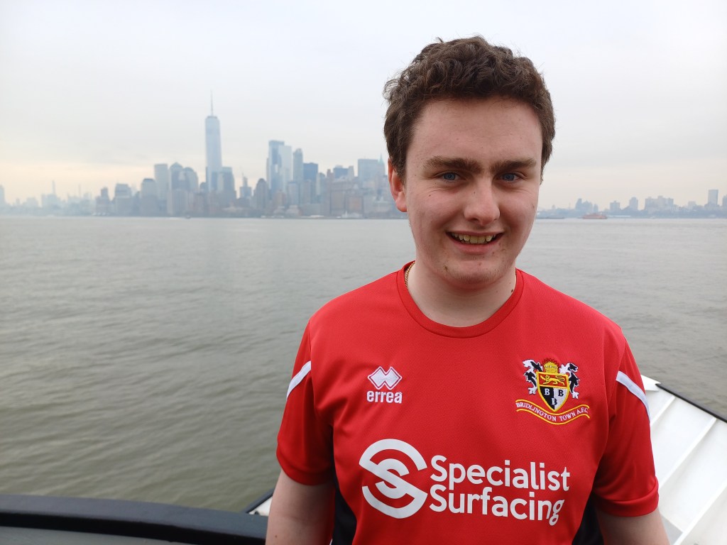 Bridlington Town first team squad 2023-24 – I’m in the black jacket, far left of the back rowWith former York City manager Michael Morton at the LNER Community StadiumMeeting Wrexham striker Paul Mullin before York City v WrexhamOperating the substitution board during a Bridlington Town match at QueensgateProudly wearing my Bridlington Town colours on holiday in New York CityCelebrations on the pitch at full time of the 2024 East Riding Senior Cup finalInterviewing York City under 19s captain Tom Algar during work experienceDisagreeing with the referee’s decision at Bridlington Town v Sheffield FCPlotting the next move with secretary Gavin and first team manager AdieWearing Bridlington Town colours on the pitch at CS Maritimo’s stadium in MadeiraInside Malta’s national stadium, watching Premier League matchesWIth Grimsby Town assistant manager and former Wrexham defender Shaun PearsonThe dugout can be a lonely place!On a tour of London’s Olympic Stadium, home of West Ham UnitedEast Riding Senior Cup 2023-24 trophy presentation at North Ferriby